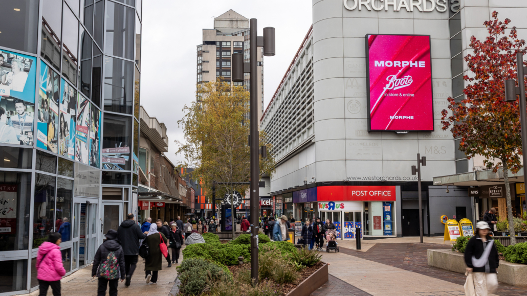 As the first large full-motion site of its kind in the city centre, our Coventry Central site provides a great opportunity to reach audiences in this fast-growing city. Sitting above the entrance of the West Orchards Shopping Centre which attracts a large number of shoppers each year, this centrally-located site is also situated near key high-street names.